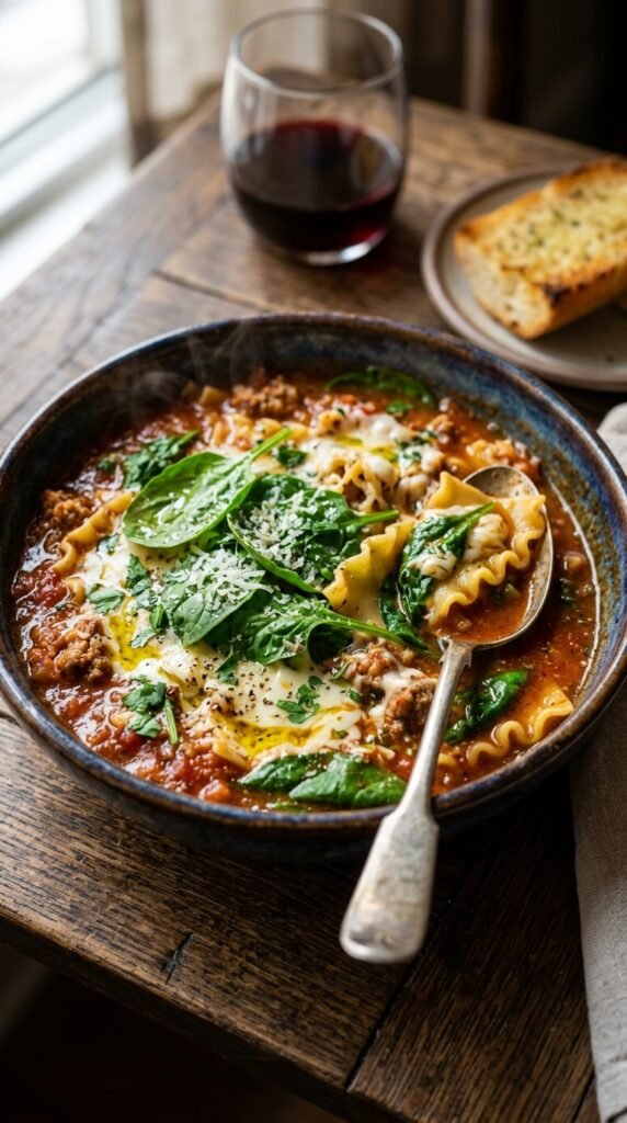 One Pot Lasagna Soup with Spinach